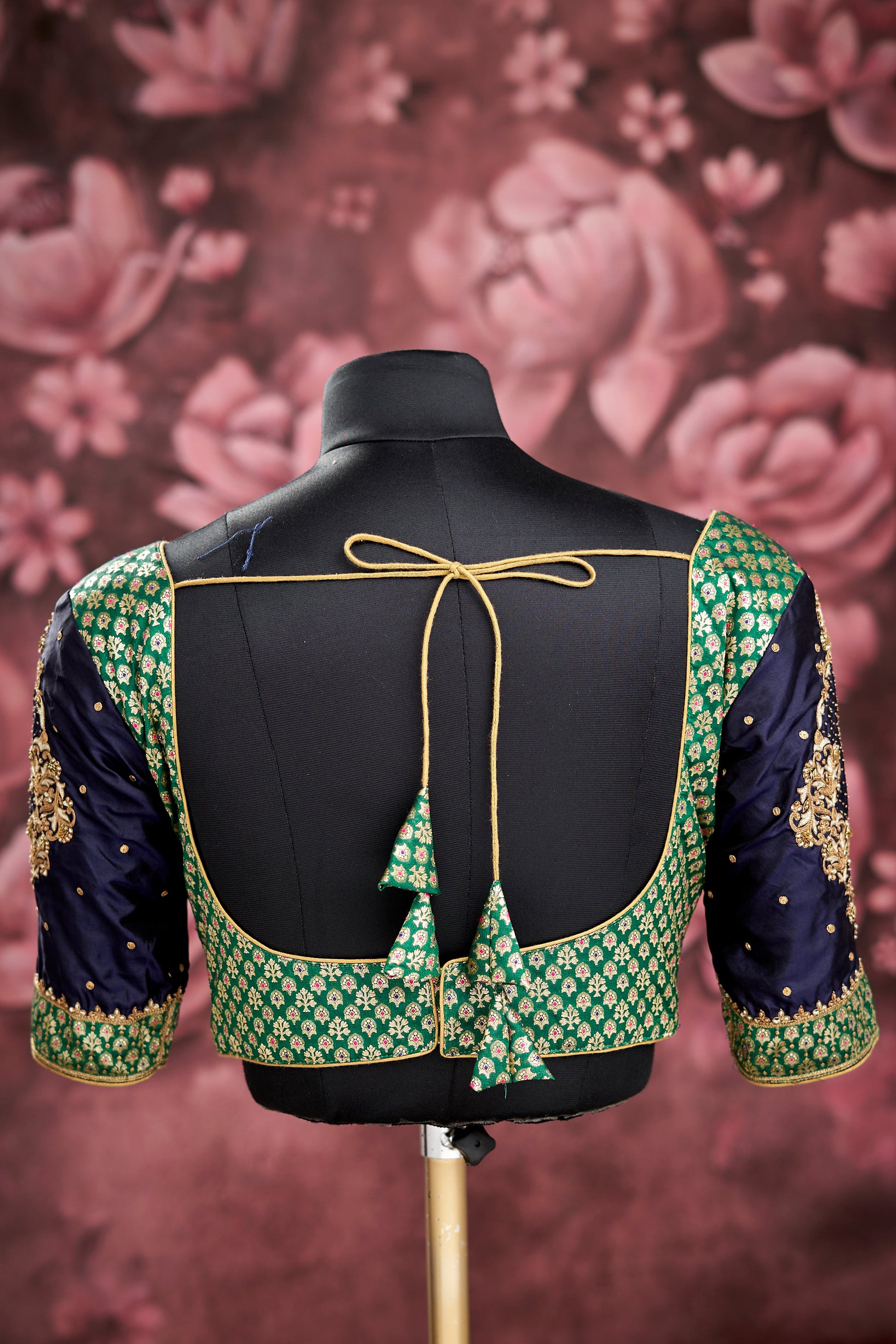 Description : Green and Navy Blue Pure Soft Silk and Brocade Unstitched fabric, with hand crafted embroidery contains of Gold Chumki, and 2 types of Gold Zari.