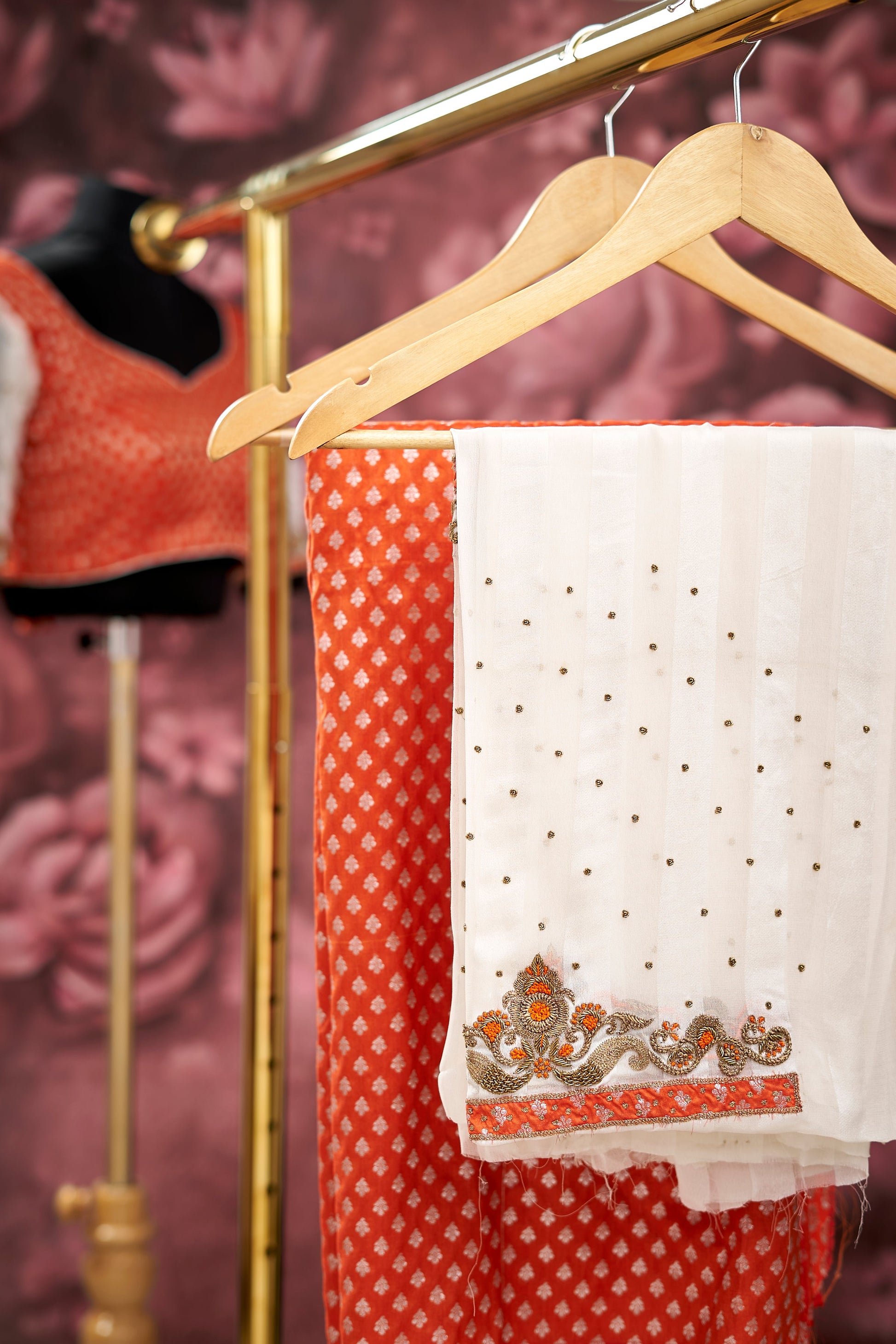 Description : Navy Blue Pure Tusser Silk Unstitched fabric, with hand crafted embroidery contains of Gold Beads, Zardosi, Chumki, Gold Zari and Silk thread.